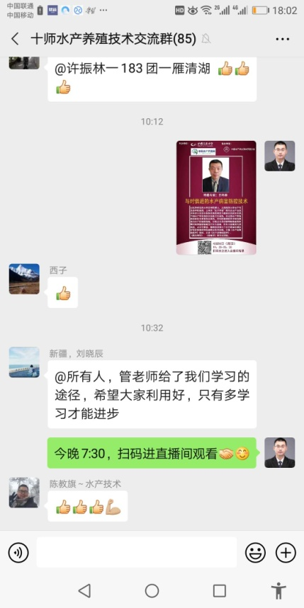 培训部首先通过在近年来我校参加培训的班群里进行问卷调查,了解到学员对于渔业生产管理、农产品(水产品)营销以及渔业依法行政等方面内容最为关心。培训部积极同兄弟单位联系,整合了中央农业干部培训中心、浙江大学、武汉大学、中国水产协会淡水养殖分会的线上公益直播资源,及时将学员急需的学习资源分享给他们,帮助他们解决生产中的难题。