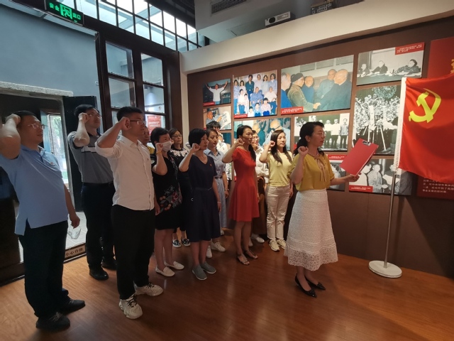 首先,全体党员在陈列馆老师的带领下参观了陈列馆,随后在正德小学模拟情景课堂情景下,开展了一场生动活泼、润物无声的情景党课。通过“淞浦的故事”和“陈云与静安”党课聆听,三位老师诵读陈云同志《怎样做一个共产党员》节选,现场互动弄堂游戏,大家在轻松愉悦中感受到了老一辈革命家无私奉献、理想信念坚定的崇高精神。最后,在结业典礼上由校工会金晔副主席领誓,全体党员在党旗下重温了入党誓词。