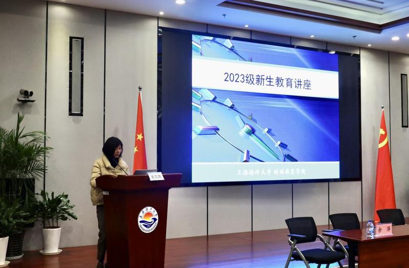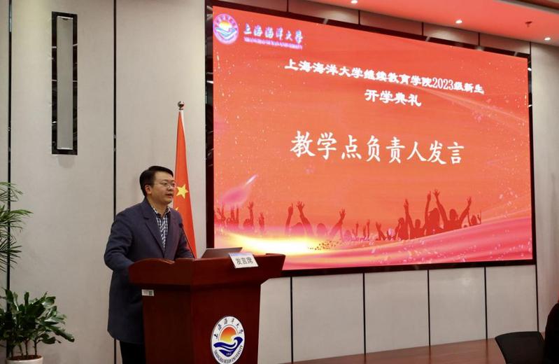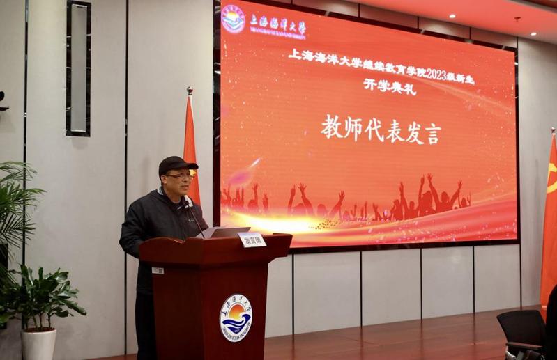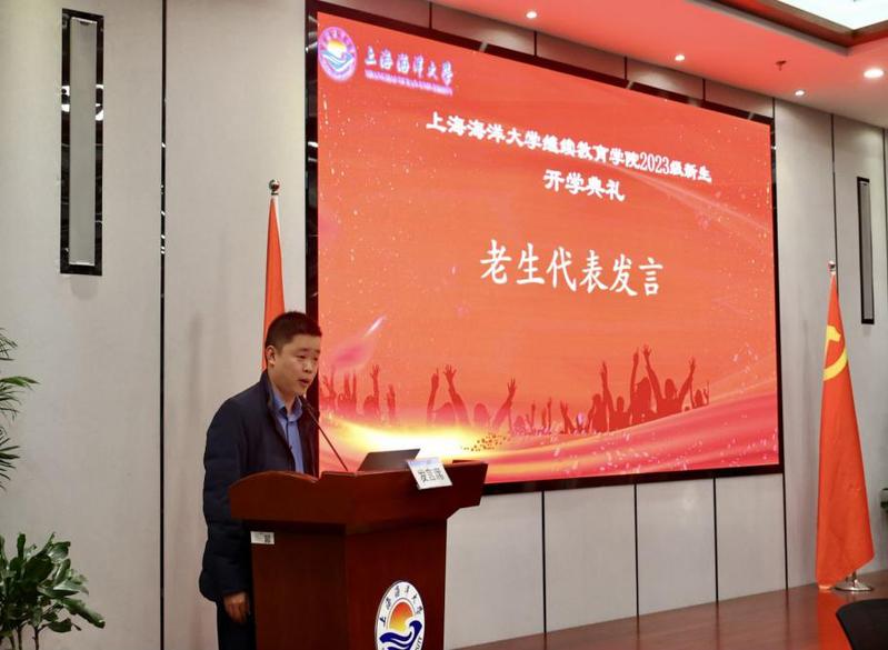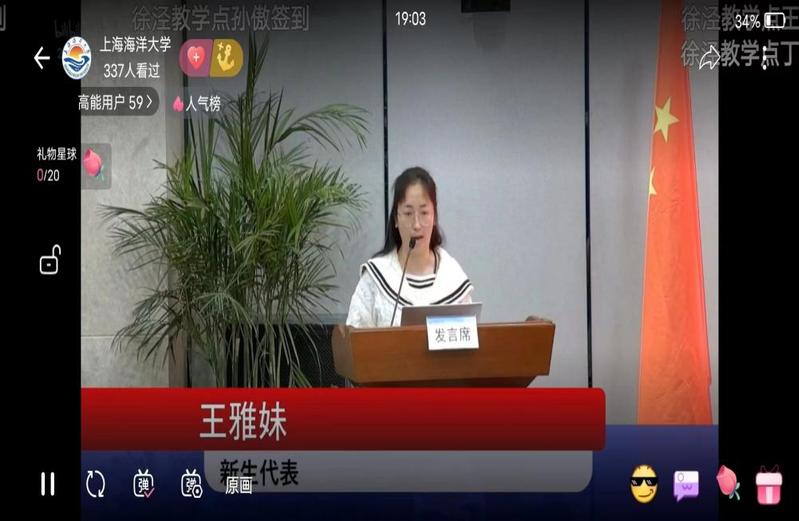 南汇教学点2023级行政管理专业本科班的新生王雅妹,代表新生发言,表示自己将不负韶华、只争朝夕,传承海大精神,勤奋学习,在未来遇见更好的自己,成为不负社会和时代期望的优秀海大人。