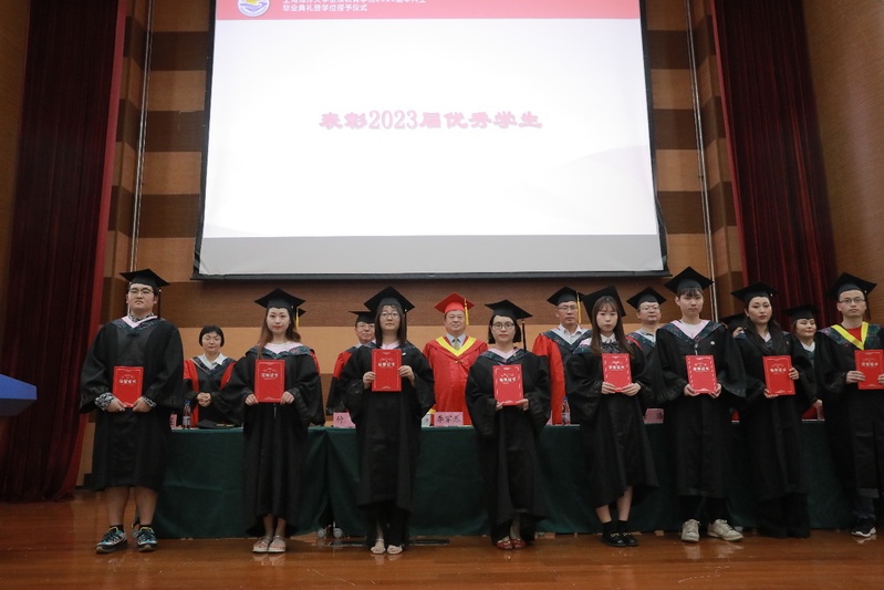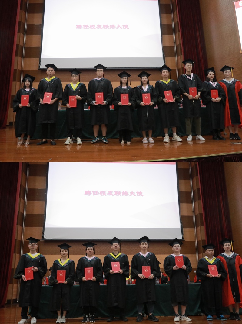 与会的校学位评定委员会成员为获得学位的毕业生依次拨穗,与会的领导和嘉宾向到场的全体毕业生颁发毕业证书,仪式上还表彰了学院2023届“优秀学生”,社会协同与校友事务处副处长林海悦向新聘任的2023届校友联络大使颁发了聘任证书。