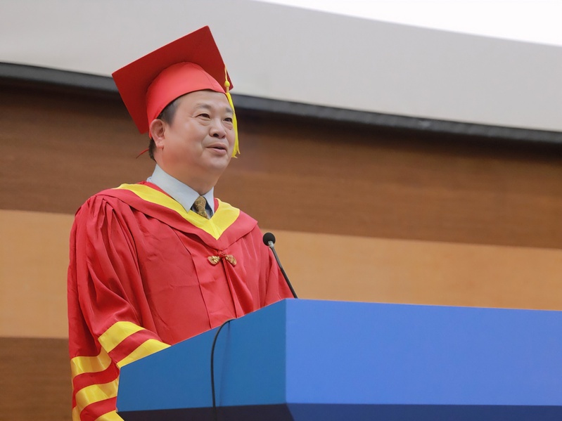 李家乐代表学校向顺利完成学业的近800名毕业生表示热烈的祝贺,并向全体毕业生提出了四点希望:一是要胸怀大志,永远做一个有使命情怀的人;二是要日积跬步,永远做一个脚踏实地的人;三是要坚毅勇敢,永远做一个积极乐观的人;四是要敢为人先,永远做一个勇立潮头的人。